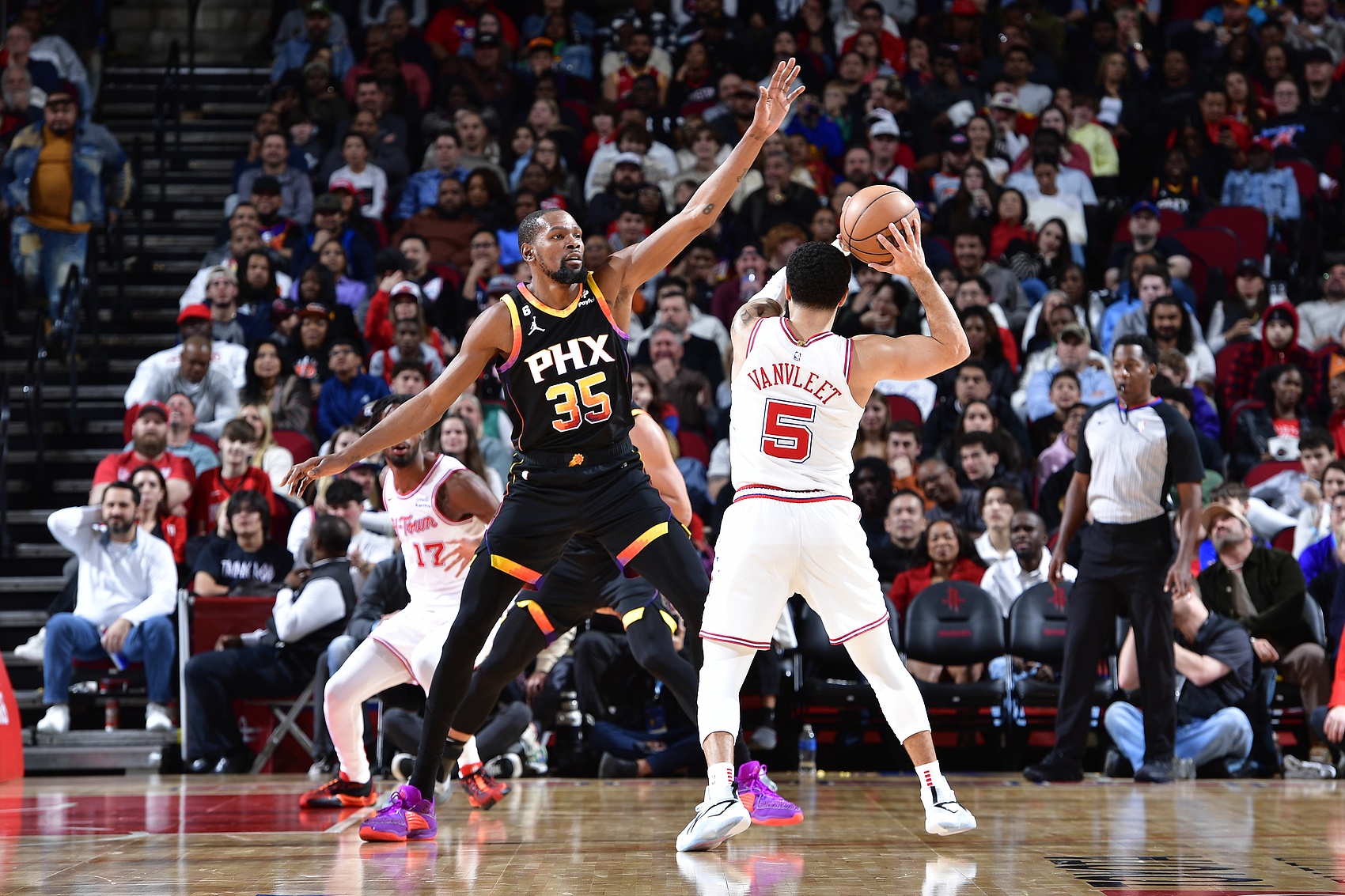 火箭是太阳完美的交易伙伴,主要有两个原因。首先,杜兰特完美填补了火箭最大的短板。凭借年轻的核心阵容和强悍的防守,火箭正在西部崛起。但他们缺乏一位能够带领球队争冠的顶级得分手,根据Cleaning the Glass网站的数据,本赛季火箭的半场进攻效率仅排名联盟第25位。即使已经36岁,杜兰特也能在这一领域带来显著提升,他的使用率和真实命中率都远高于火箭轮换阵容中的任何一名球员。其次,火箭控制着太阳2025年、2027年和2029年的首轮签,这些首轮签最初是太阳在交易杜兰特时送给篮网的。重新获得部分或全部首轮签将使太阳能为杜兰特时代画上圆满句号,同时也让球队能够在未来自由操作,而不必担心失去乐透签的风险。