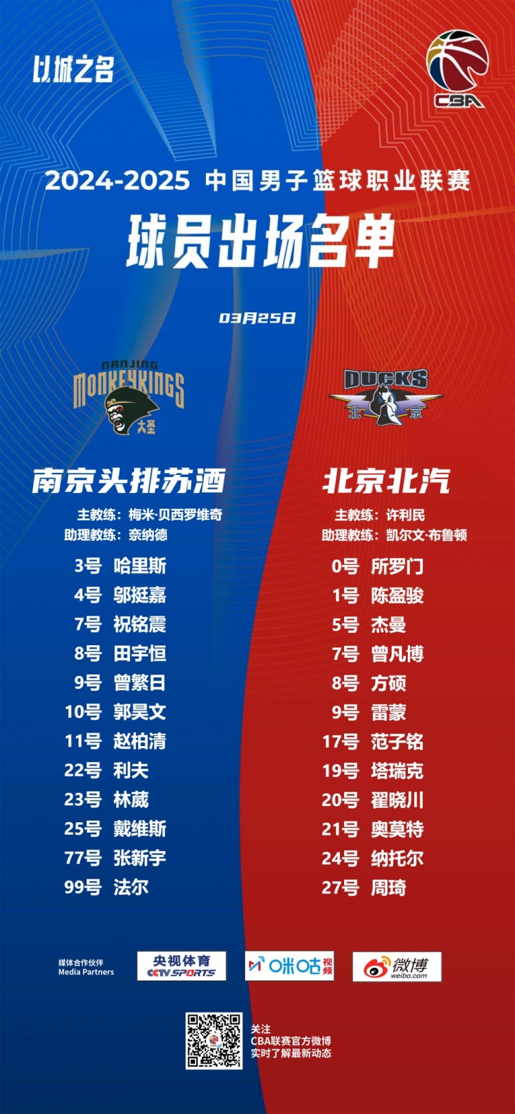 2025-03-25 22:34:40同曦VS北京大名单:郭昊文林葳领衔 陈盈骏和雷蒙复出