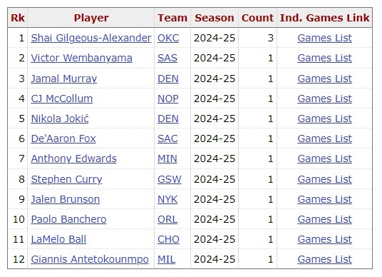 2025-03-04 12:14:28还有谁!赛季至今亚历山大20+到50+场次都是联盟第一