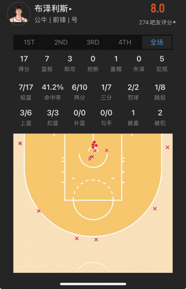 公牛11号秀 马蒂斯-布泽利斯 登场31.1分钟