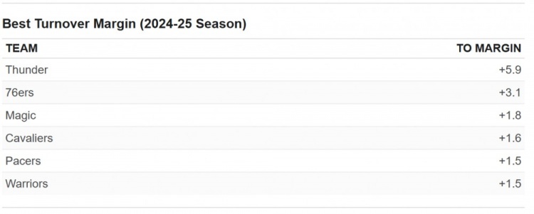 14、雷霆不仅在防守端擅长制造对手失误,他们在进攻端的失误控制也是联盟最佳。这种双重优势意味着雷霆每场比赛比对手少失误5.9次,这将打破1987-88赛季掘金创造的5.1次纪录。本赛季,只有一支球队的失误差能达到雷霆的三分之一。
