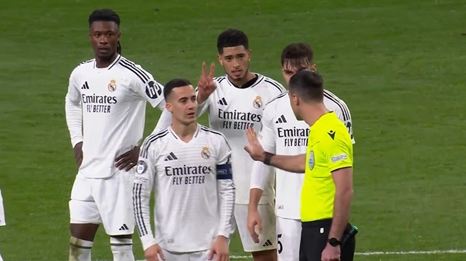 2025-03-13 10:06:11皇马全员抗议!检查小蜘蛛是否2次触球时,贝林等人纷纷伸2根手指