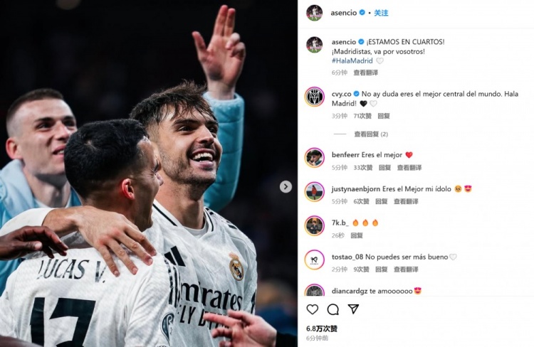 2025-03-13 10:07:17劳尔-阿森西奥社媒庆祝晋级八强:皇马球迷们,这是献给你们的