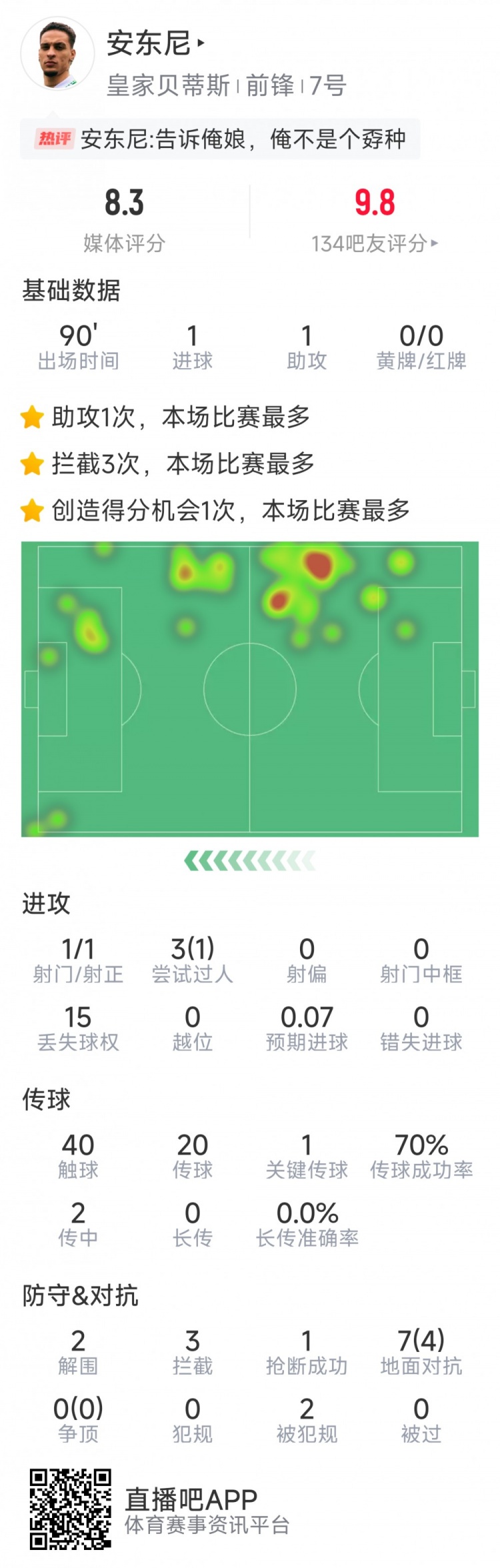 2025-03-14 07:28:46再度闪耀!安东尼本场数据:传射建功,1次射门即破门,1关键传球