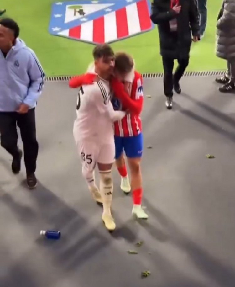 2025-03-14 11:54:02亦敌亦友!皇马后卫劳尔-阿森西奥赛后拥抱安慰马竞中场巴里奥斯