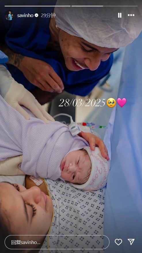 2025-03-30 05:40:14恭喜!萨维尼奥社媒晒照庆祝孩子出生
