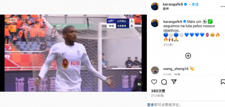 2025-03-01 18:01:11连场破门,卡兰加社媒:再进一球,继续朝着目标努力奋斗
