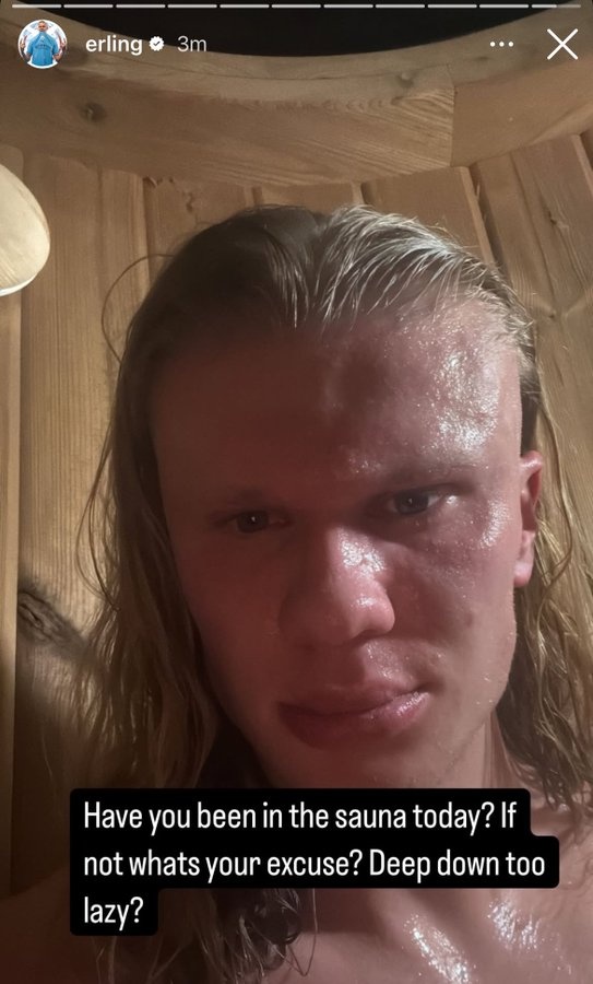 哈兰德晒出自己蒸桑拿的照片,并配文:“你今天蒸桑拿了吗?如果没有,你的借口是什么?内心深处太懒?”