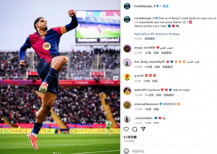 2025-03-03 03:49:27传射建功!阿劳霍社媒晒庆祝照:这就是巴萨,让我们赢得更多!