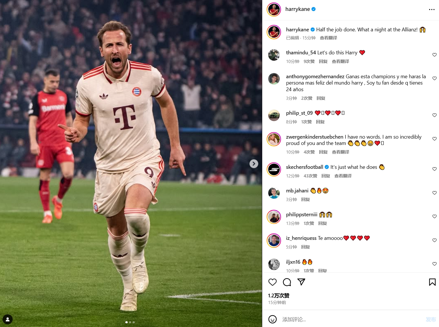 2025-03-06 11:09:31梅开二度!凯恩社媒晒庆祝照:安联球场的美妙之夜!